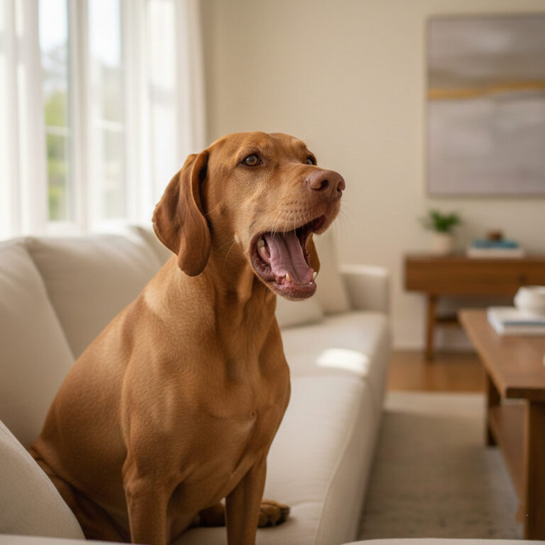 Dogs often yawn when they are not tired to communicate how they are feeling. This behavior is primarily a “calming signal” used to release stress,