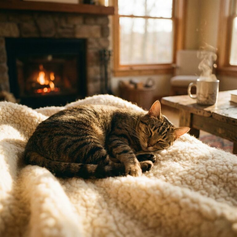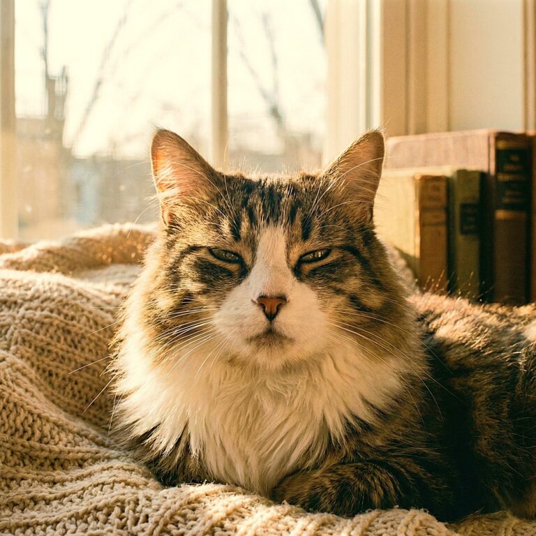 Cats sit in a “loaf” position, tucking their paws and tail underneath their bodies, primarily to conserve body heat and maintain a comfortable body temperature.