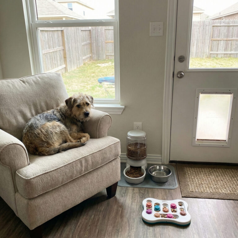 When left alone for a full workday, dogs require more than just food and water. Their primary needs include consistent access to fresh water, a