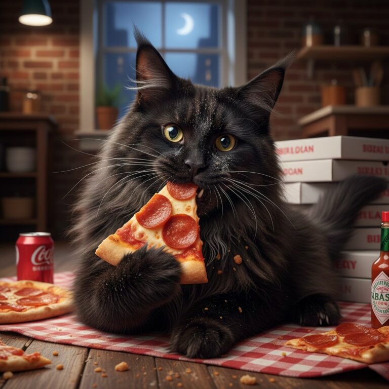 No, cats should not eat pizza. Pizza contains ingredients that are harmful or toxic to cats, specifically garlic and onions found in the sauce, which