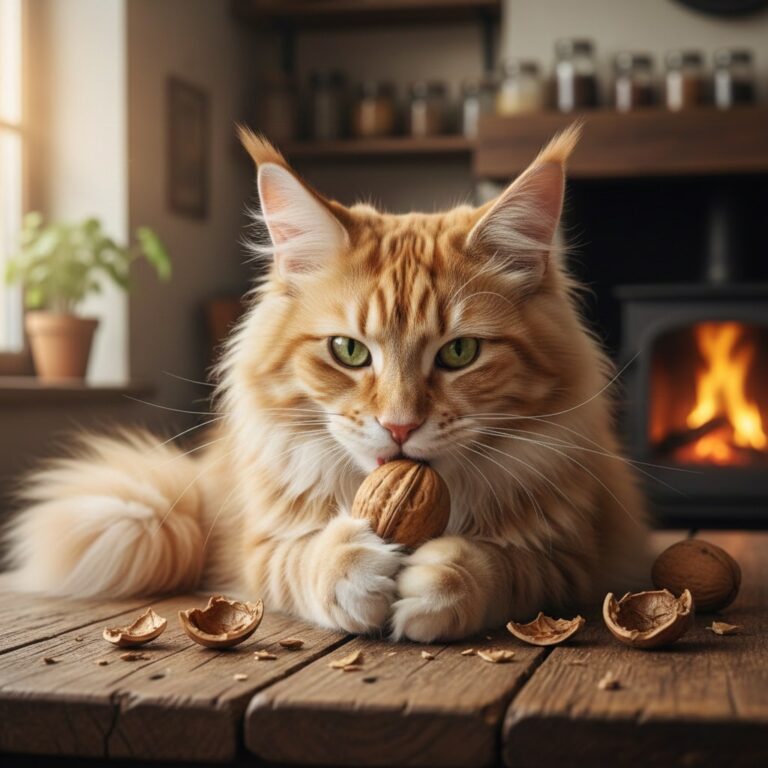 No, cats should not eat walnuts. While a small piece of a standard English walnut is rarely fatal, walnuts are high in fat, which can
