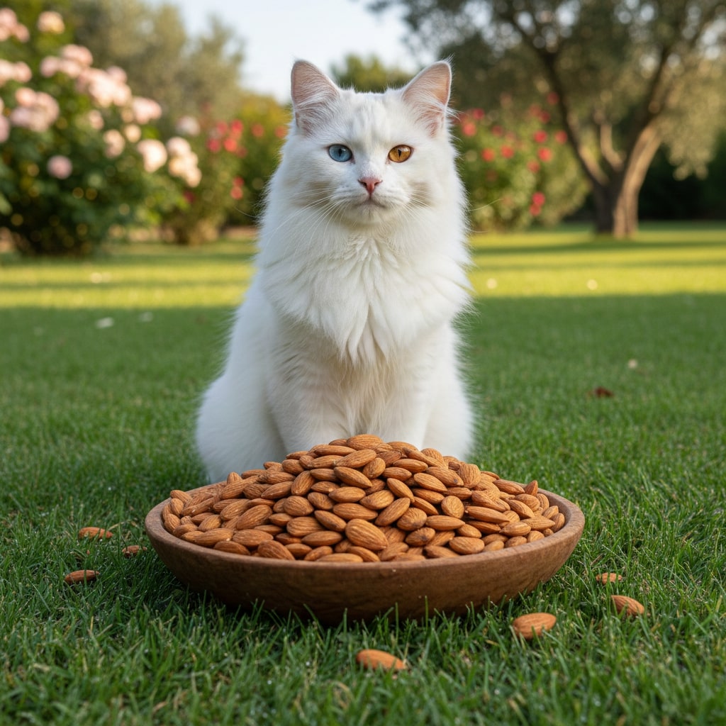You are snacking on a handful of almonds, and your cat looks up at you with those wide, begging eyes. It is tempting to toss one down, but you pause. Can cats eat almonds safely?