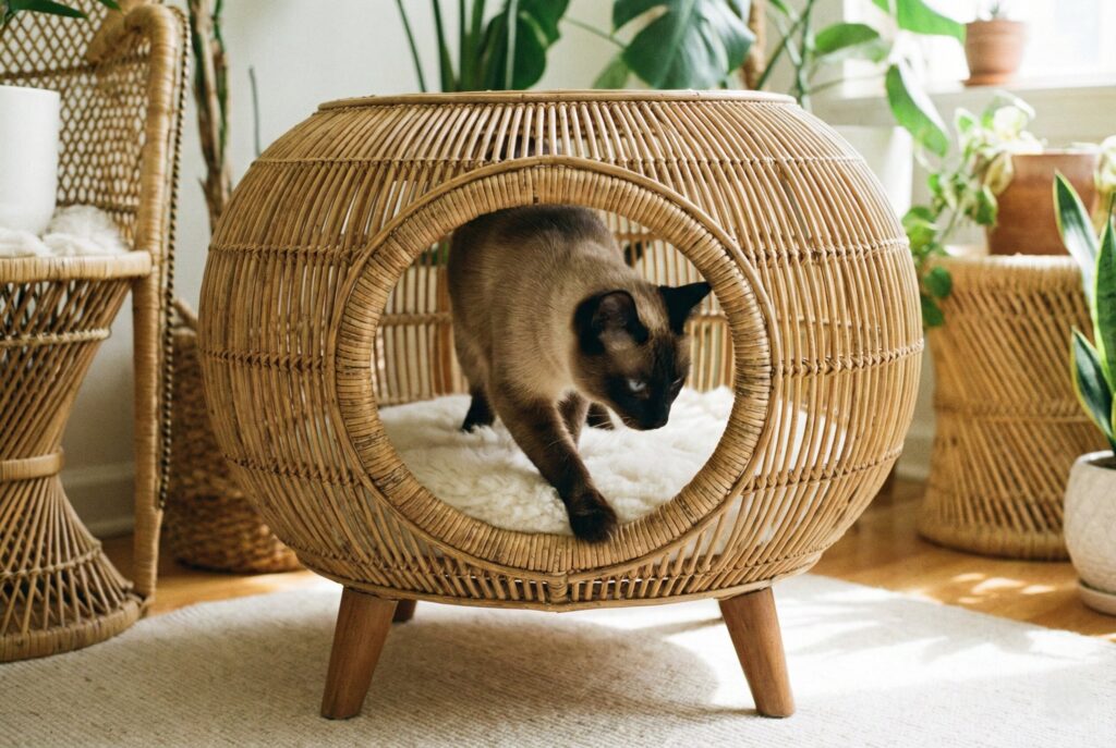 For homes with a bohemian or natural decor style, wicker shacks are ideal. They offer the enclosed feeling cats love but are breathable because of the woven structure.