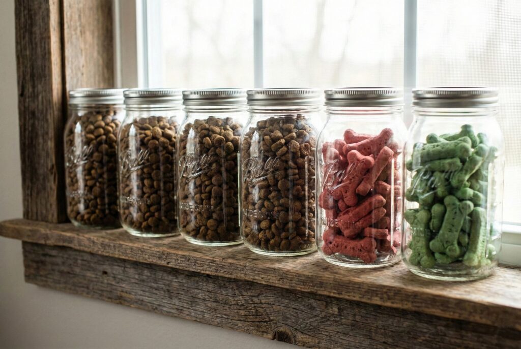 While not for bulk storage, standard mason jars are excellent for organization. If you have a pet sitter coming, you can pre-measure each meal into individual mason jars so they don’t overfeed your dog. They are also perfect for keeping varied treats fresh and visible on a shelf.