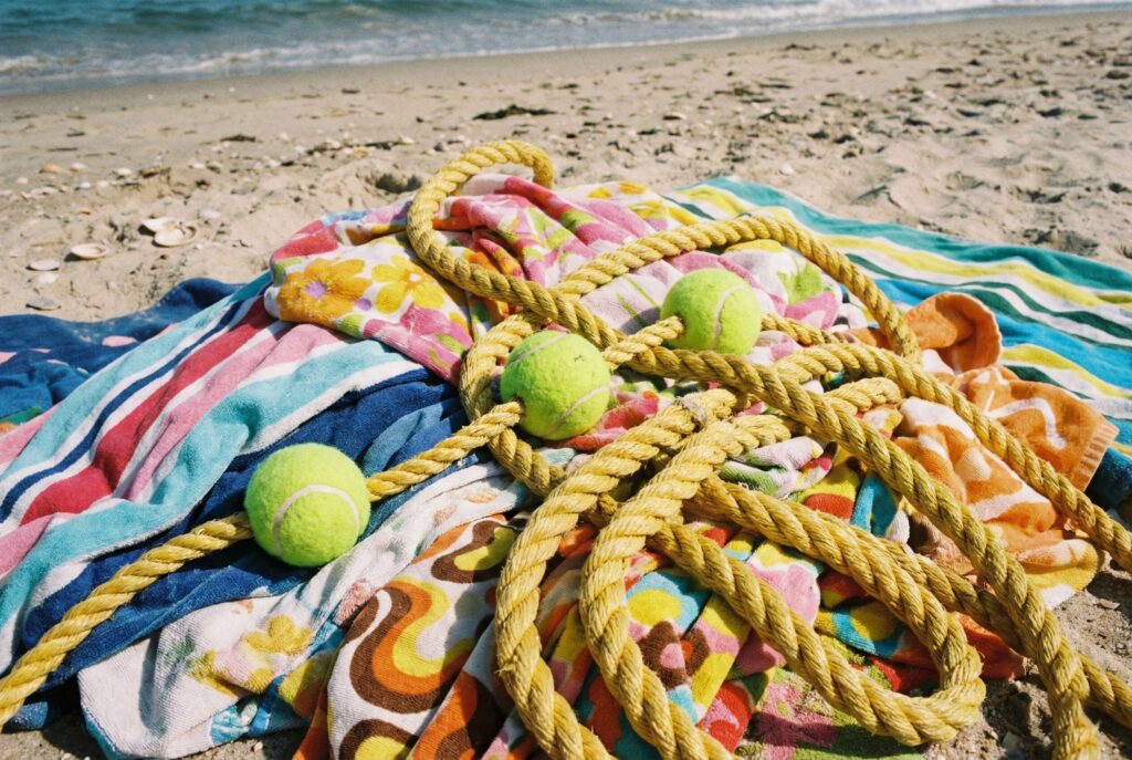Purchase a few hollow, floating rubber balls (avoid standard pressurized tennis balls). Use a drill to carefully create a hole straight through the center of two or three balls. Buy a length of floating marine rope (polypropylene rope floats well). Thread the rope through the balls, tying a knot between each ball to keep them spaced out. Tie a loop at one end for your hand.