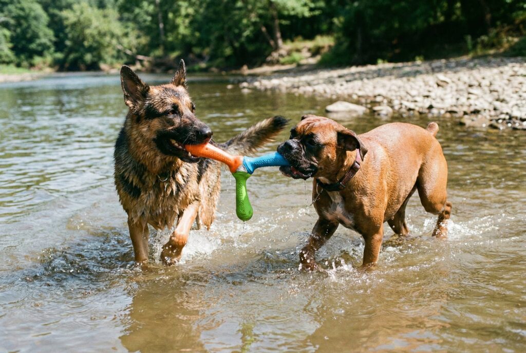 Multi-dog households. Because the toy has three distinct legs, multiple dogs can grab a piece of it and play tug-of-war together in the shallow water.