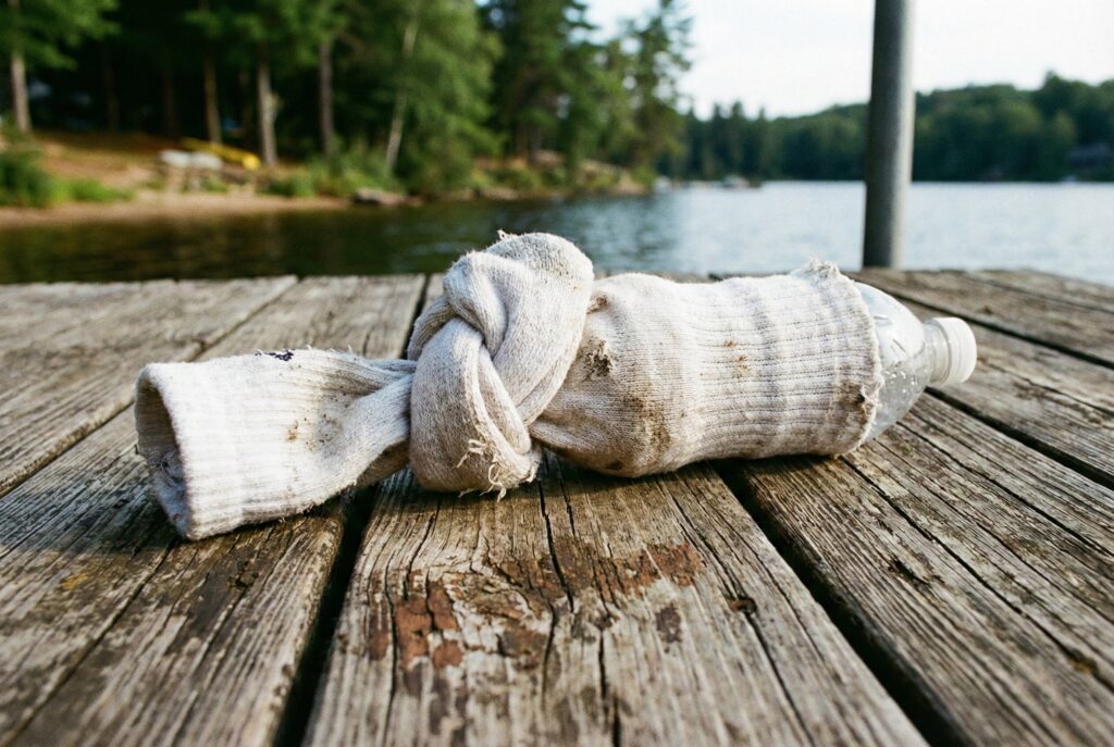 Dogs absolutely love the crunching sound of an empty plastic water bottle. By combining a bottle with a simple sock, you get a toy that floats perfectly and provides great auditory feedback.
