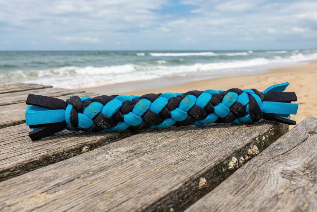 Neoprene is tough, stretchy, and floats naturally. The braided texture cleans your dog’s teeth while they play, and the material will not get waterlogged or heavy.