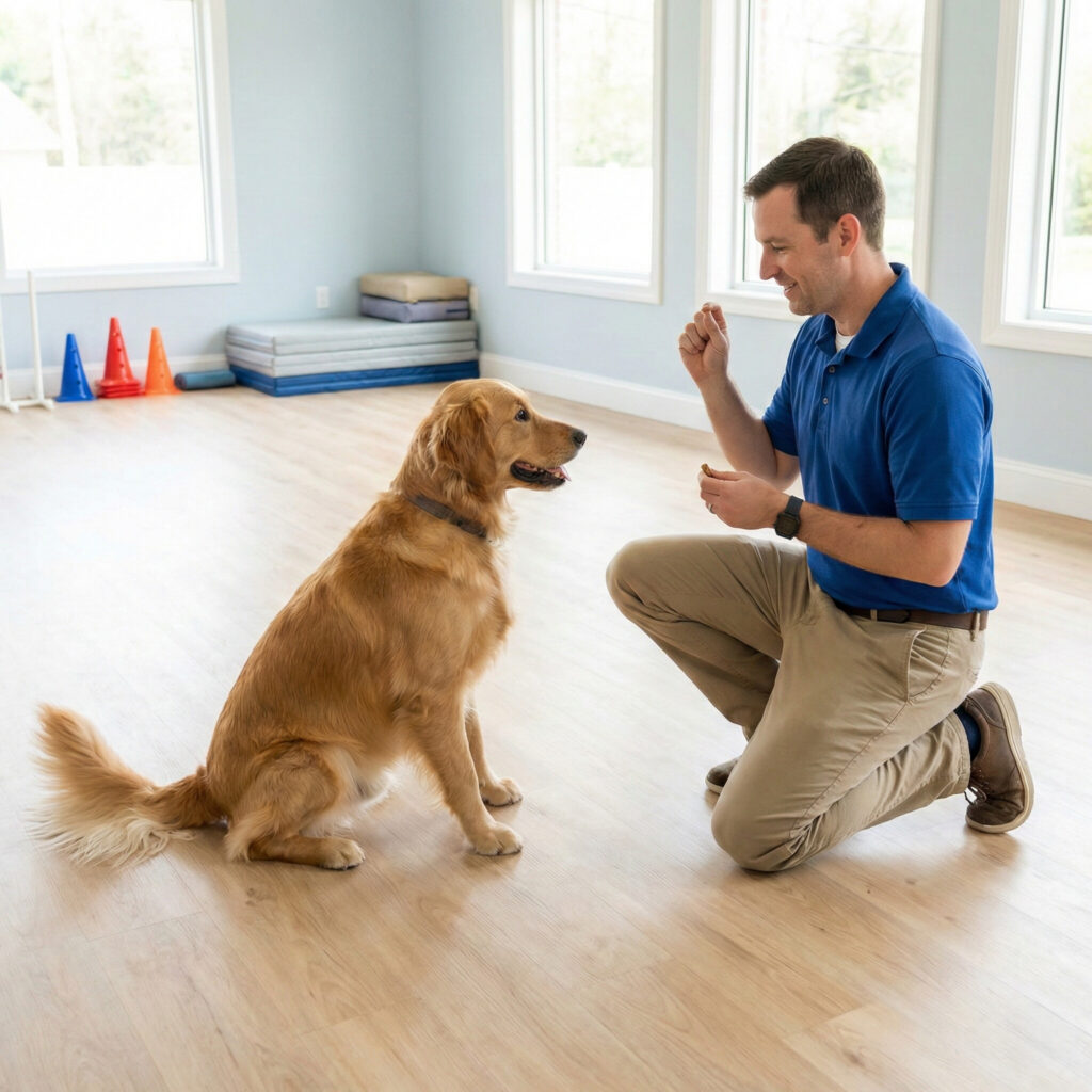 Start with easy wins. Ask for commands the dog knows perfectly and enjoys doing. This builds confidence and gets the dog in a “working mode.”