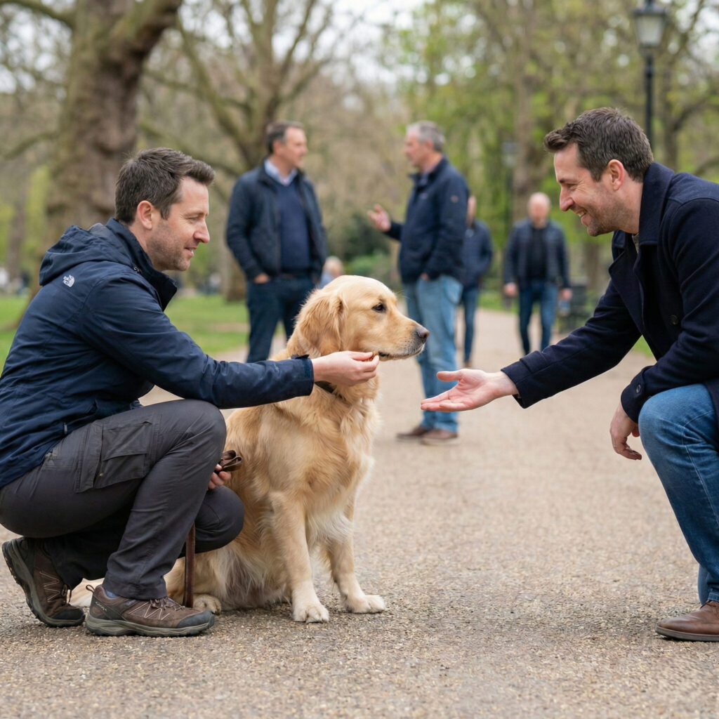 - The 3-Second Rule: If the dog remains calm, tell the helper they can offer a flat hand for the dog to sniff. After 3 seconds, call your dog back to you (“Fido, here!”) and reward heavily.