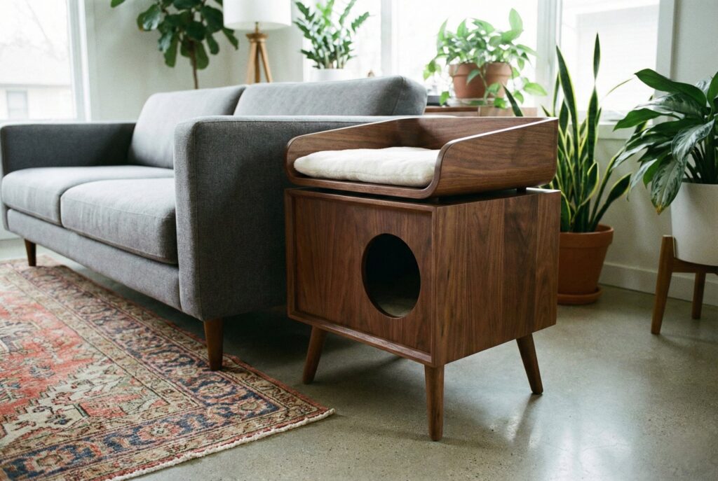 Mid-century modern design is characterized by clean lines, organic curves, and tapered wooden legs. Pet manufacturers have fully embraced this trend, creating beautiful cat condos that look like expensive living room furniture.