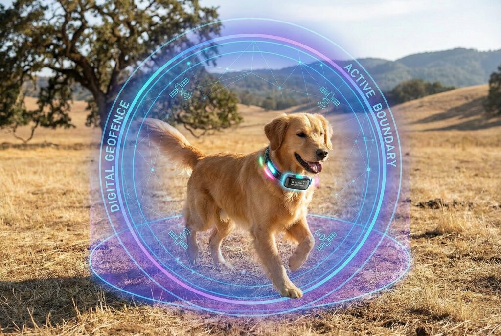 How it Works: You set a center point and a radius on a base unit or smartphone app to create a circular boundary. The dog wears a GPS-enabled collar. If the dog crosses the virtual GPS boundary, they receive a tone or static correction.