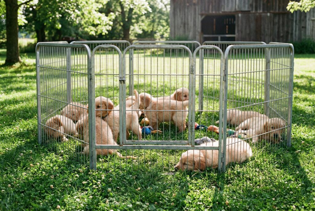 The pen must be large enough for your dog to move freely. They should be able to stand up fully, turn around, lie down, and take several steps in any direction.