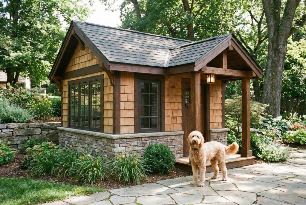If budget is not a constraint and you want the absolute best for your dog, a custom-built miniature house is the way to go. These shelters can be designed to perfectly match the architectural style, siding color, and roof shingles of your primary residence. They often feature functioning windows for cross-ventilation, miniature porches, and even solar-powered fans.