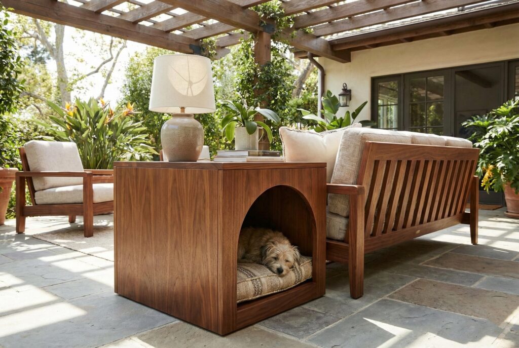 - Best For: Small to medium dogs, covered patios, and owners who want dual-purpose furniture.
