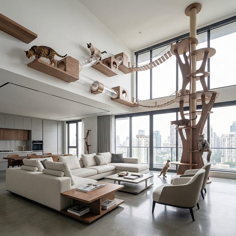 Vertical space is essential for cats because it satisfies their natural instinct to climb, observe their environment from a safe vantage point, and establish territory.