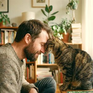 Cats headbutt people, a behavior scientifically known as bunting, primarily to mark them with scent glands located on their heads. This action deposits pheromones that