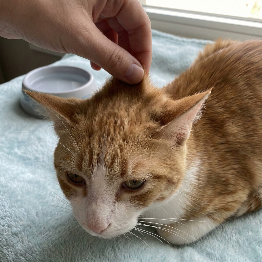 - Hydrated Cat: The skin snaps back into place immediately. It looks like it was never pinched.