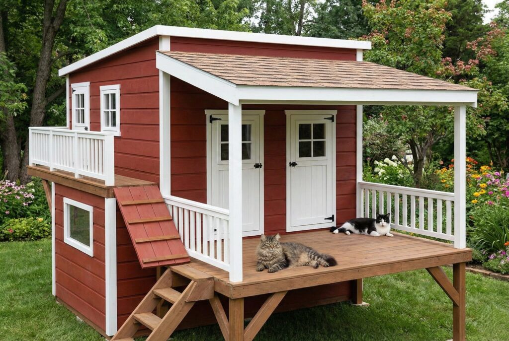 This is the gold standard for outdoor community cats. It prioritizes function and survival over looks. It is typically a rectangular box made from rot-resistant cedar.