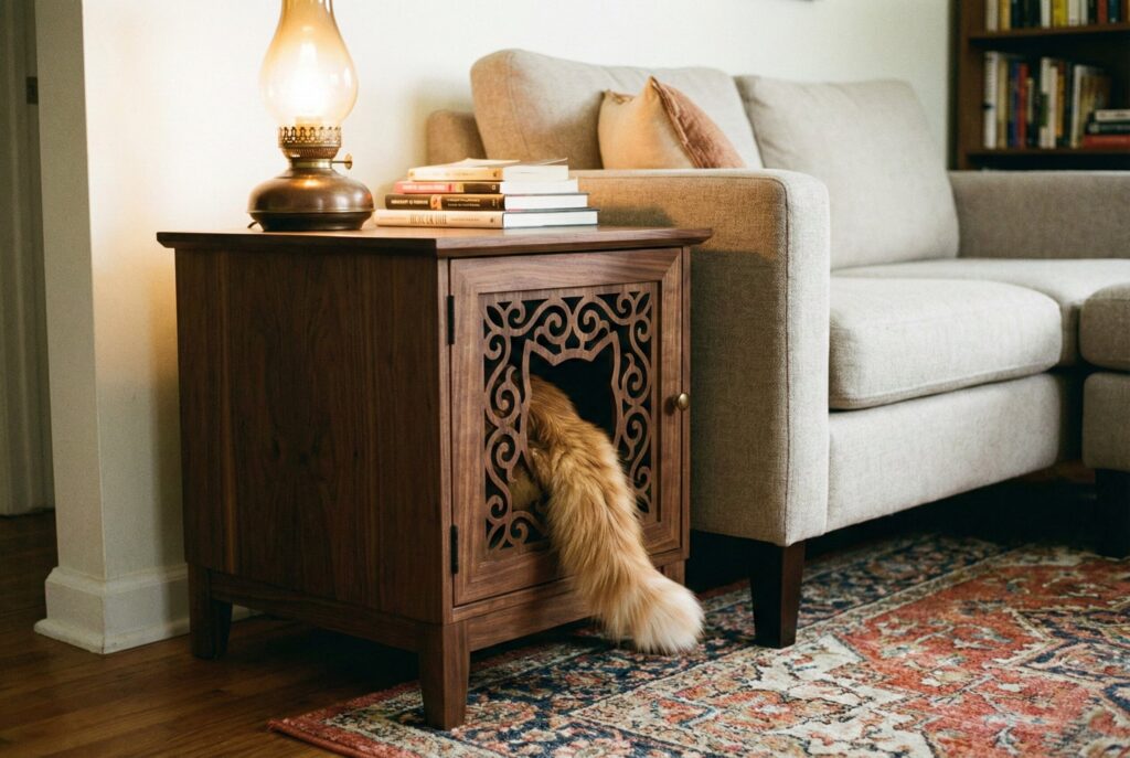 For the design-conscious cat owner, a sleek plywood cube fits perfectly into modern apartment decor. This is about providing a dedicated hiding spot that looks like high-end furniture.