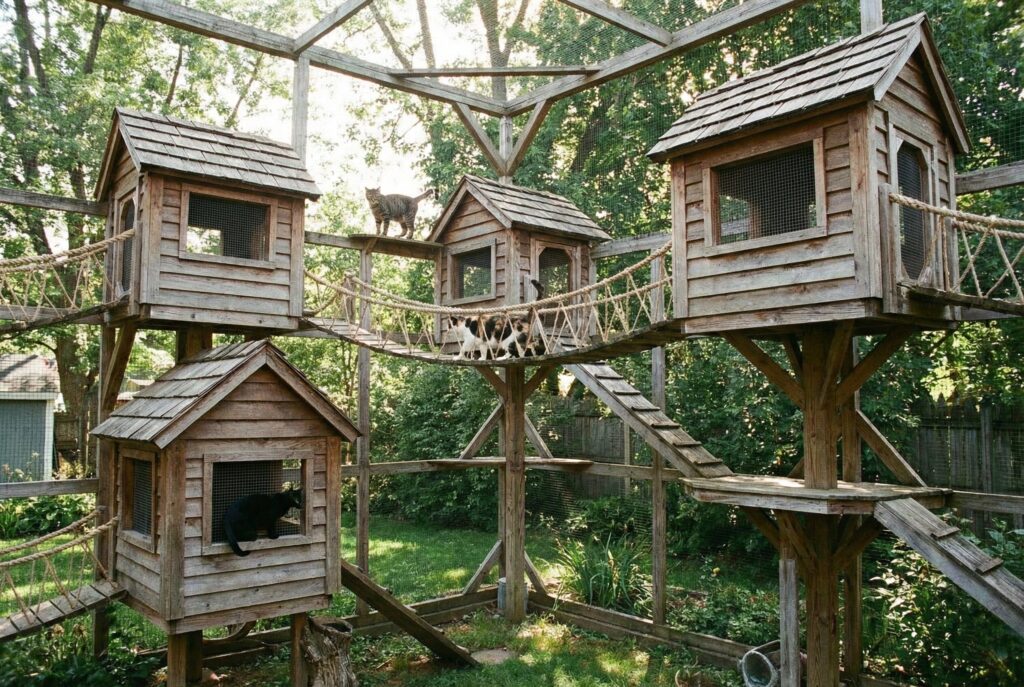These are massive structures, often resembling play structures for kids, but for cats. They are best for households with multiple active cats and large outdoor spaces (like a “catio”).